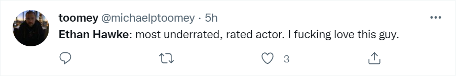 「伊桑霍克就是最被低估,以及最受歡迎的演員,我tm愛死這哥了!」