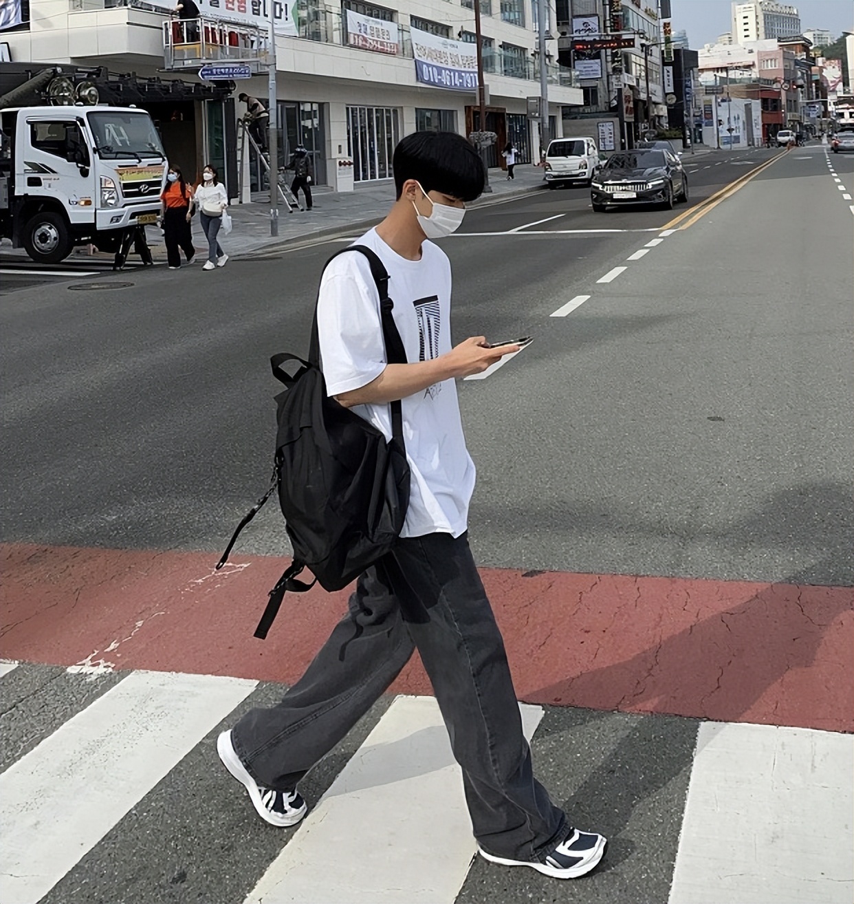 喜歡百搭耐看一些,經典黑白灰組合更加受到男生歡迎。灰色基礎V領針織背心,裡面搭配一件白色的T恤,顏色上層次十足。黑色直筒牛仔褲,加上帆布鞋,舒適又簡約。▼