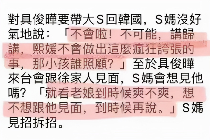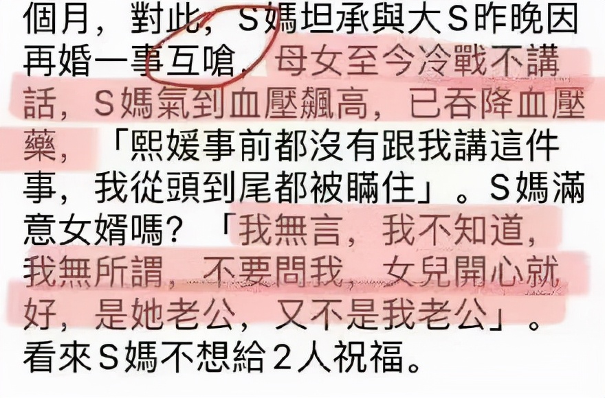 臺媒爆出的「大S媽媽氣到吞降壓藥」標題已經夠有畫面感了(畢竟S母女相愛相殺的故事在臺灣娛樂圈已經是家喻戶曉)。