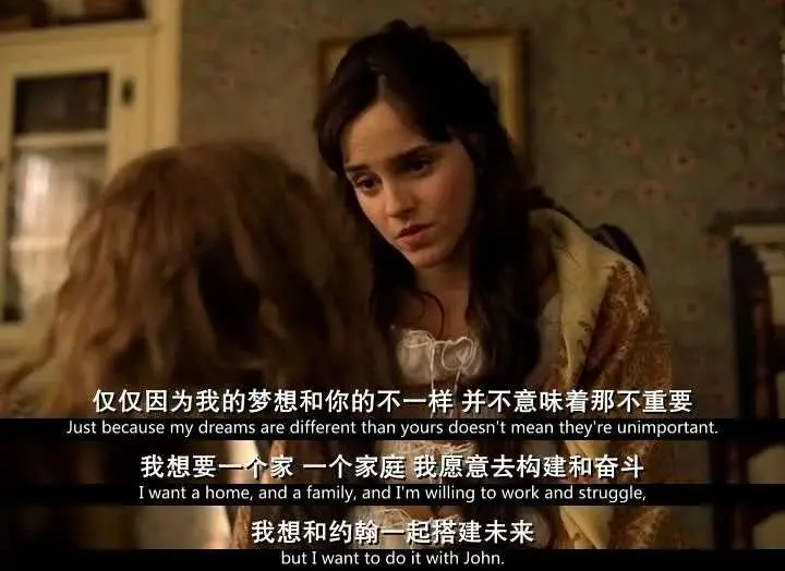 正如她對喬所說:只是因為我的夢和你不同,可並不代表不重要。我想要一個家,我會工作和奮鬥,但我願意和約翰一起。