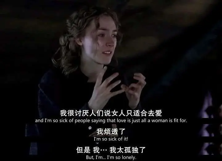 喬想了一下,她說,我知道。我只是覺得女性有思想、有靈魂、也有正義的心,有野心有天賦有美貌,我討厭有人說愛是女生最適合的,我受夠了。但是我孤獨。