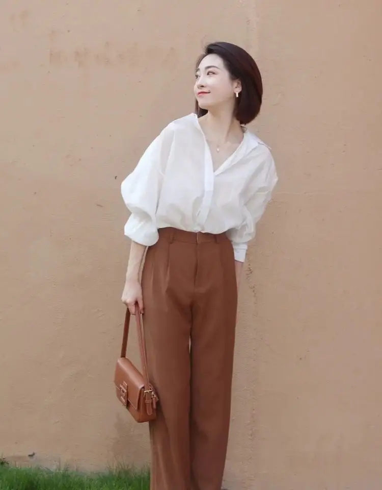 襯衫是一款比較實用且百搭的單品,日常喜歡偏休閒風格的女生,可以嘗試與闊腿褲進行搭配,闊腿褲也是很主流的穿搭單品,對身材的包容性極強,遮肉顯瘦能力很出色,同時又能帶來極好的舒適體驗。