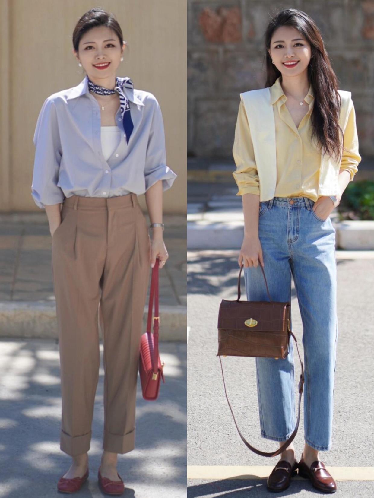 襯衫的普通穿法可能會比較單調,除了塞衣角,也可以試試這兩種更時髦的穿法,一種是半遮半露,既能強調出腰線,又能遮胯顯瘦,另一種是在腰間打結,露出性感的腰部,吸睛又迷人。