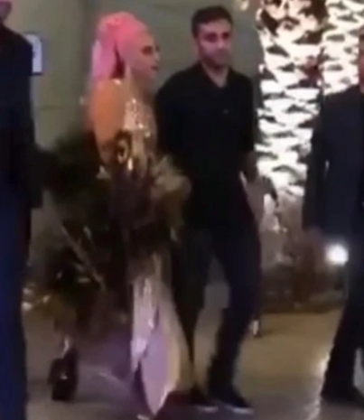 據報導,化著煙熏眼妝、塗著深紅唇膏的Gaga身穿一襲金色單肩露背長裙,踩著高跟鞋,將新染的泡泡粉色長髮梳成高馬尾攏在腦後,摩登范十足。神秘男子身著黑衣黑褲,模糊的照片也遮不住帥氣面容。lady gaga 在新護花使者的陪伴下迎來了新年鐘聲的敲響。隨後,兩人擁抱在一起甜蜜熱吻,之後兩人牽手坐上同一輛車離開,目前男子具體身份還未公開。