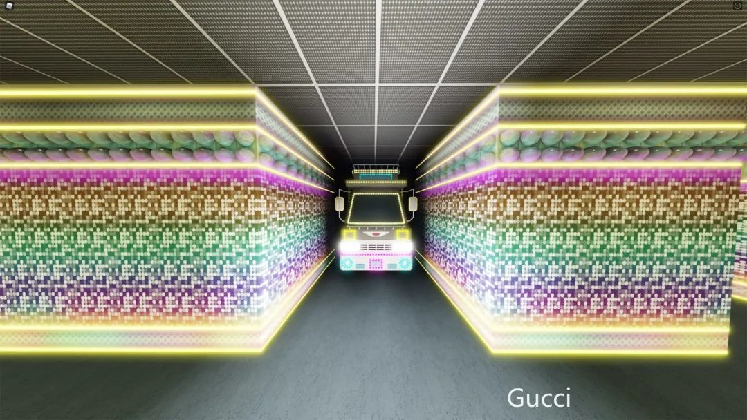 為慶祝百年誕辰,Gucci攜手Roblox共同舉辦了Gucci Garden虛擬展,其中,色調鮮明的空間和生動的圖案形象頗為引人矚目。