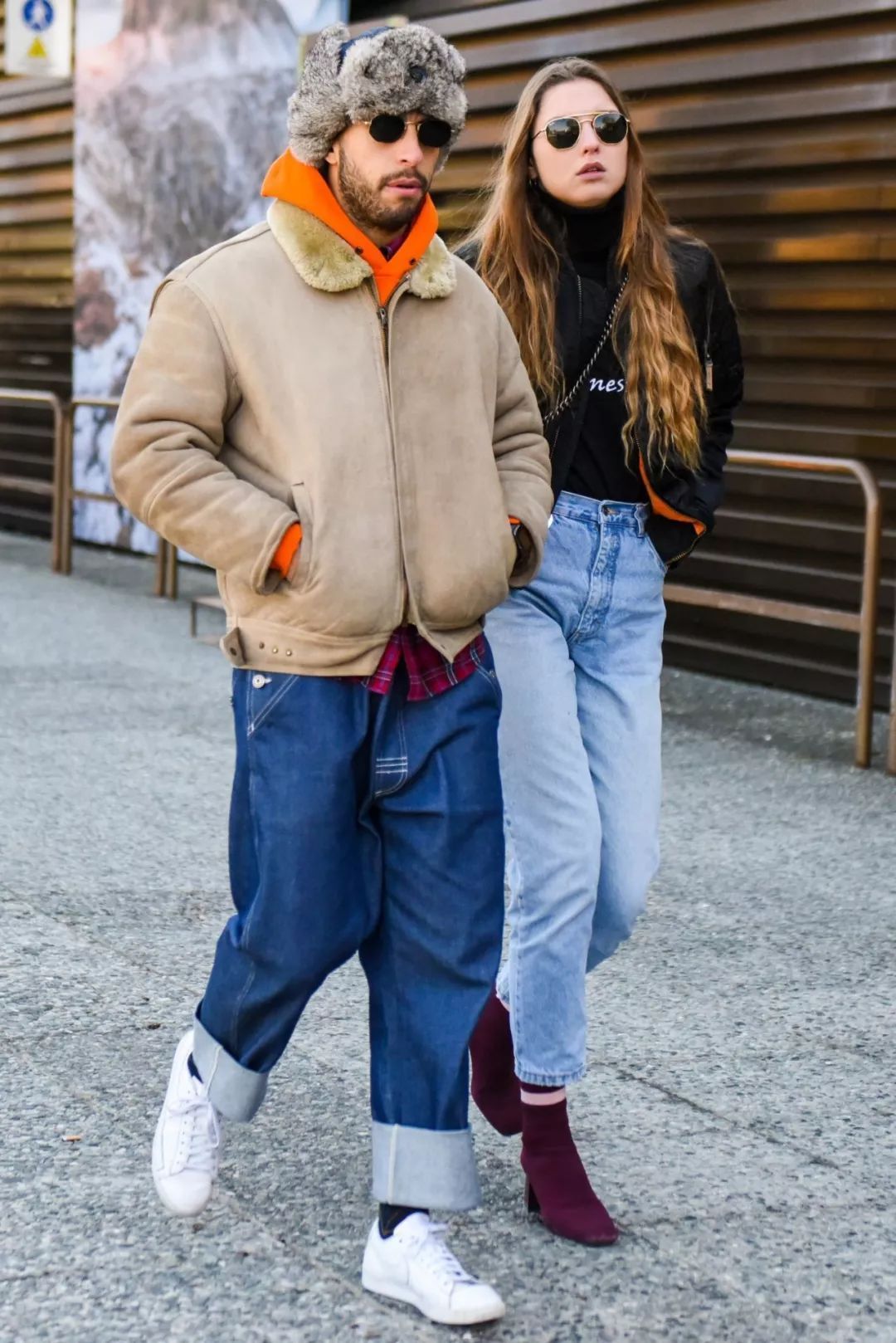 卷邊牛仔闊腿褲本身時尚感較強,所以在搭配上可以選擇一些有質感的上衣,例如夾克、衛衣疊穿,展現滿滿的雄性荷爾蒙魅力,腳踩一雙小白鞋就很好看。