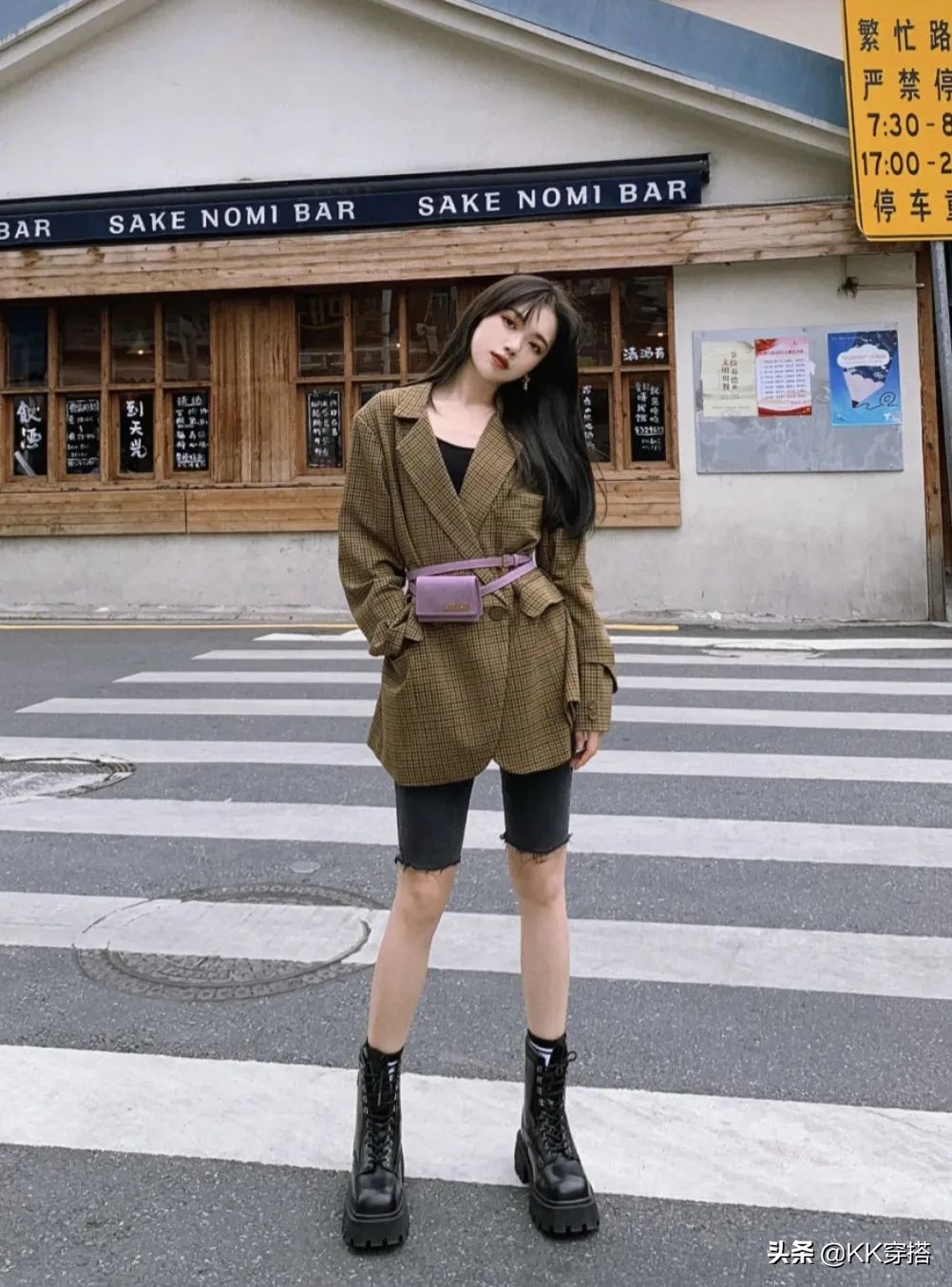 其次,如果你不想用腰帶,可以換成腰包,將全身的視覺焦點移到上半身。