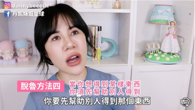 丹妮婊姐覺得,雖然方法4有點玄,不過,這是她閱讀過一本有關金剛經的著作所得來的道理,內容緊扣,「當你想要得到某一個東西,你要先幫助別人得到那個東西」書中提到,裡面有希望可以盡早脫離單身,而解決的方法,正是要他去幫別人脫離單身。或許你會想著,難不成以後都要用這種利益心態去幫助別人嗎?其實也不是,丹妮婊姐說,我們不要把事情想得那麼龐雜,求一個真心誠意、不帶任何條件、不求任何回報的幫助別人,哪天你驀然回首,就會發現一切都是有因果關係的!