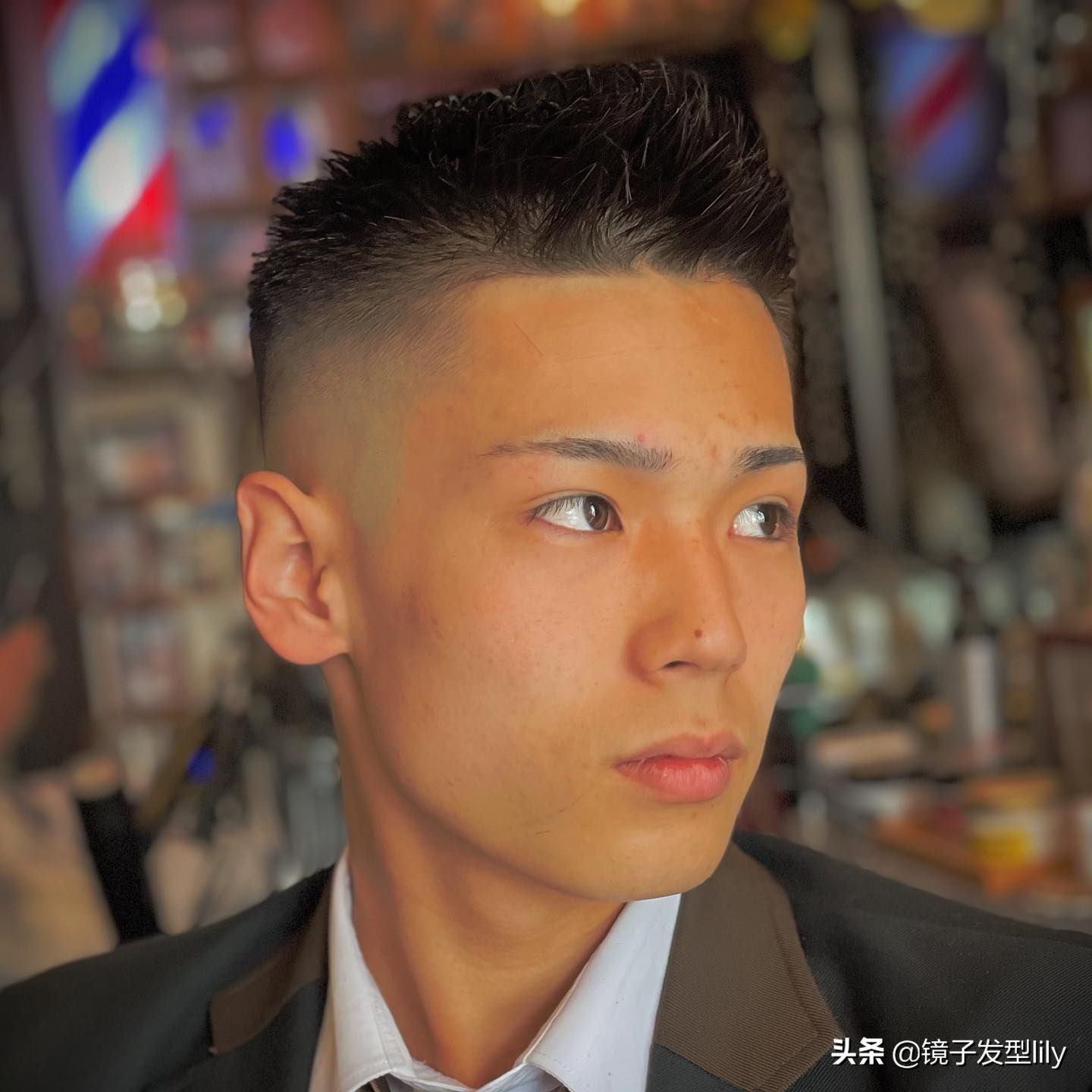 要是覺得飛機頭有些誇張的話,還可以選擇這種瀏海向上梳理偏向一側的造型,露出額頭顯得很自信。