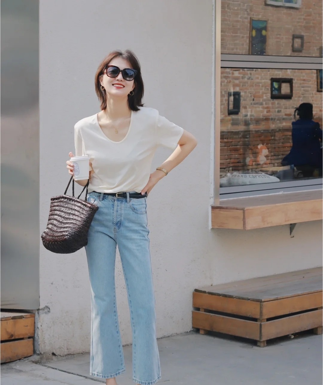 在溫度偏低的時候,那些露膚面積較大的單品還不能走入大家的視線之中,溫度一旦提升,轉入了夏日之後,就可以看到各種短袖的身影。在眾多顏色之內,白色T恤帶來的搭配可能最多,它也是一款最具減齡作用的單品。