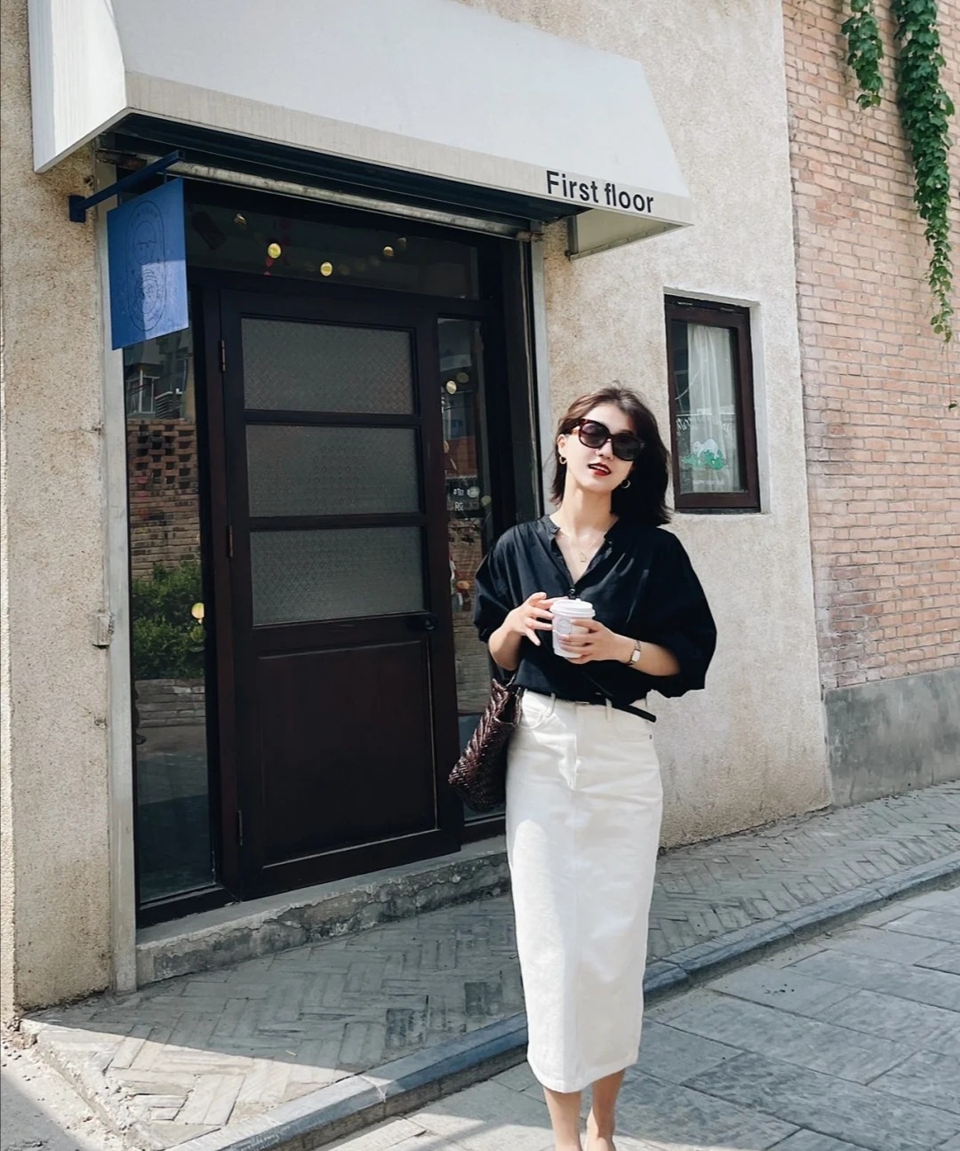 除了利落的長褲以外,也可以準備一條純色過膝半裙。像這款白色包臀半身裙,它能打造出清新的效果,也可以通過輪廓勾勒臀部線條,展現出若隱若現的女生味。