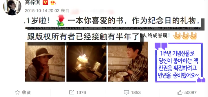 例如,他倆結婚紀念日,高梓淇送的禮物,是蔡琳喜歡的一本書跟書的版權。