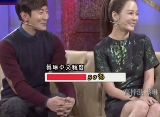 某綜藝裡魯豫讓他們倆給自己的語言能力打了個分,蔡琳的中文程度大概是百分之五十。