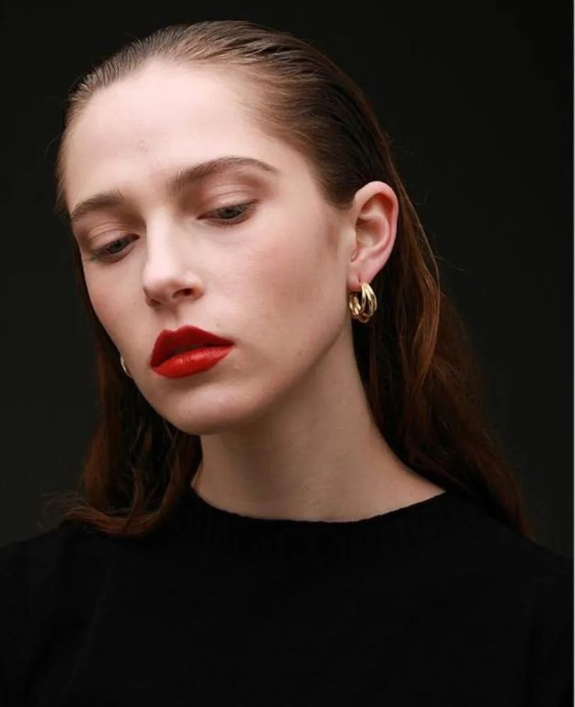 還有百搭、萬能、萬金油一般存在的基本款耳圈!這對耳圈,同樣給人一種強烈的現代、冷冽感,配純色衣服特別好看。中空設計讓耳飾本身更輕巧,戴久了也不會累。