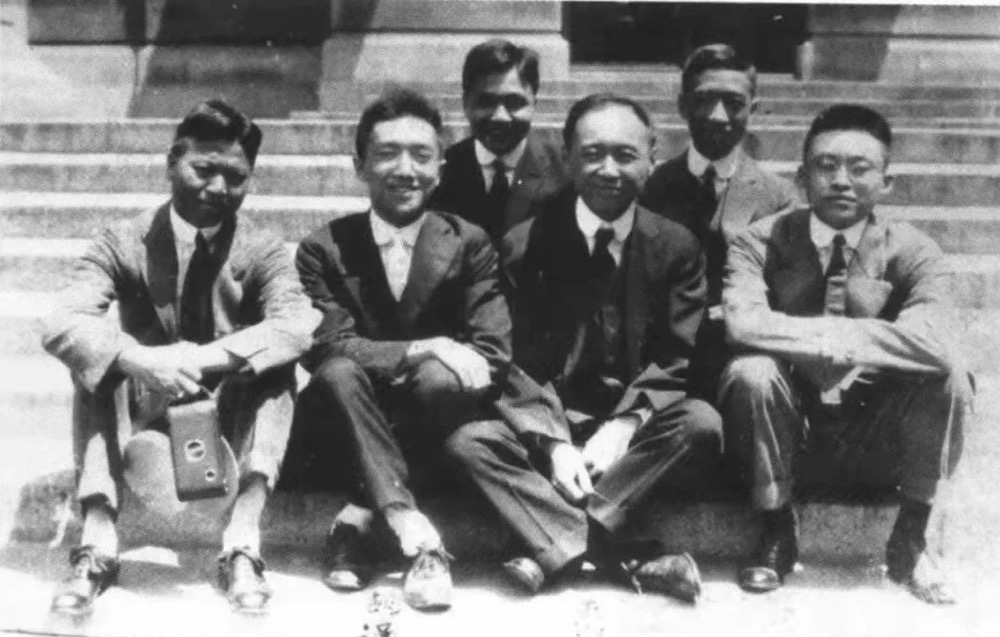 陶行知赴美途中與同學在郵輪甲板上的合影,前排左一為陶行知。