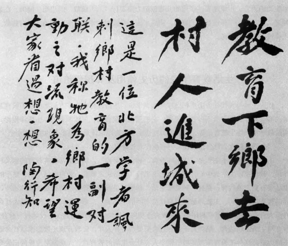 在參與推進平民教育的過程中,陶行知日益清楚地認識到鄉村教育對社會改造和社會平等的關鍵意義,認識到民眾十之八九住在鄉下,平民教育「就是到鄉下去的運動」,就是「處處讀書,人人明理」,造就現代國民,最終「以統一的教育促成統一的國家」(《平民教育概論》,1924年)。他是非常善於鼓動的,提出「我們的新使命,是要征集一百萬個同事,創設一百萬所學校,改造一百萬個鄉村」。他認為鄉村教育不是教會農民向城裡跑,而是改造鄉村生活,發展科學和為農民謀利益的農業經濟,讓普通農民像其他人一樣獲得有尊嚴的生活,讓無數個獲得新生的鄉村匯聚成國家的新生。