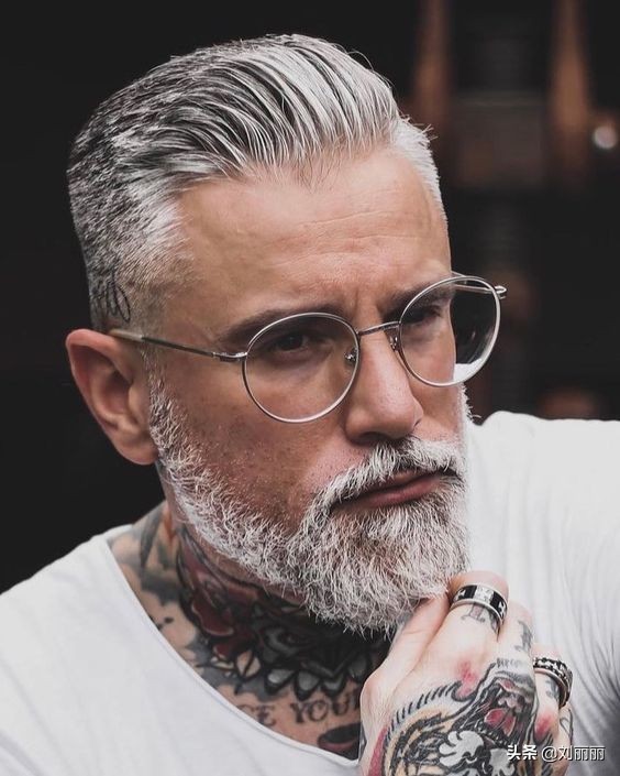 兩側鏟短頭頂向後梳的大背頭造型,對於頭髮花白的男子來說,也特別的適合,配個眼鏡看著顯得知識很淵博,帥得有型有品位。
