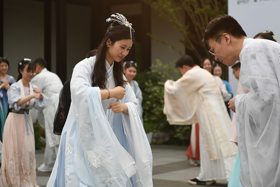 人們參加古裝遊園相親會。 (新華社 黃宗治/圖)