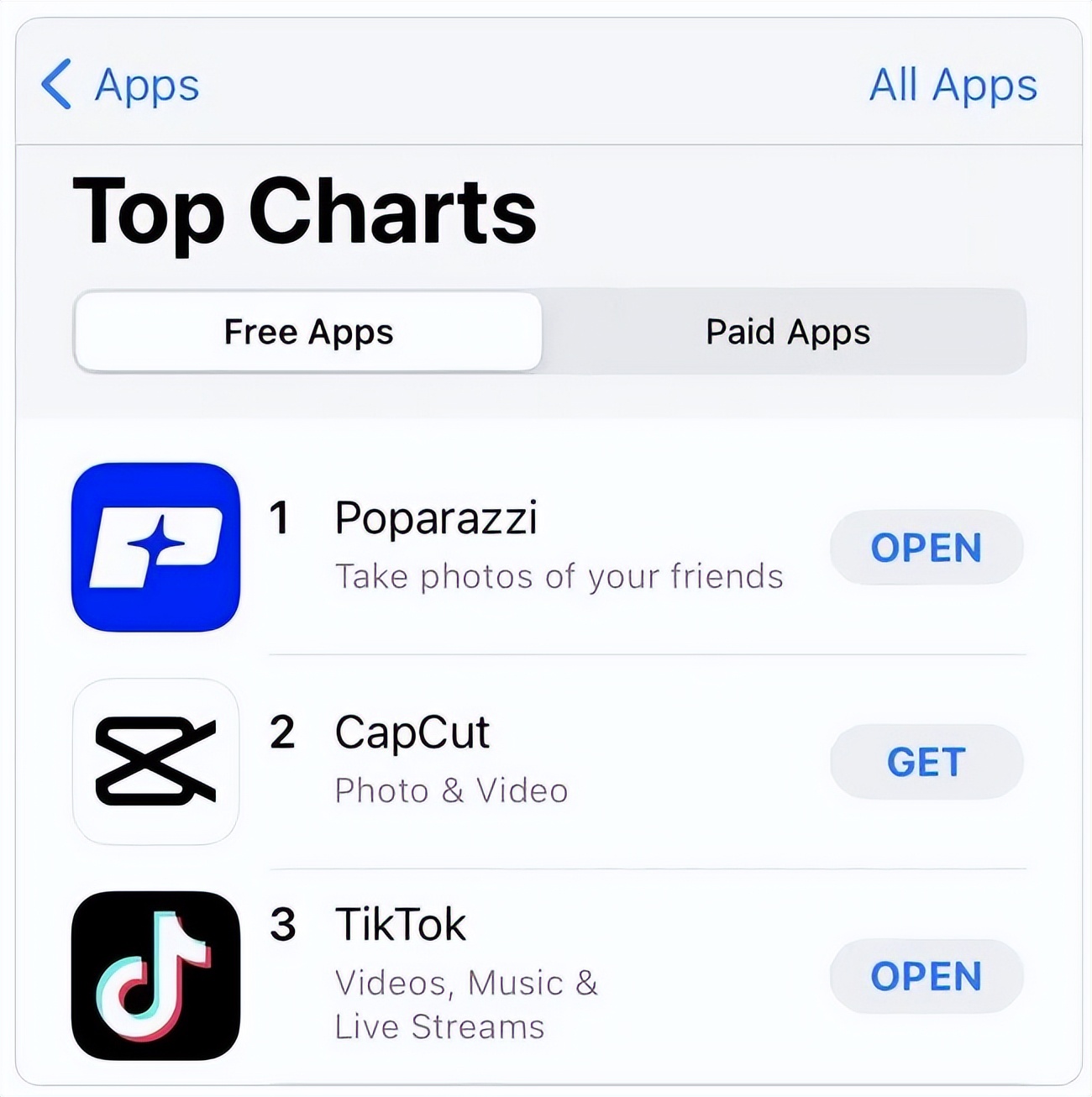 去年,美國免費榜上一款社交 App ,名為 Poparazzi 。