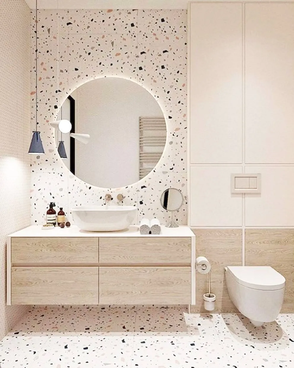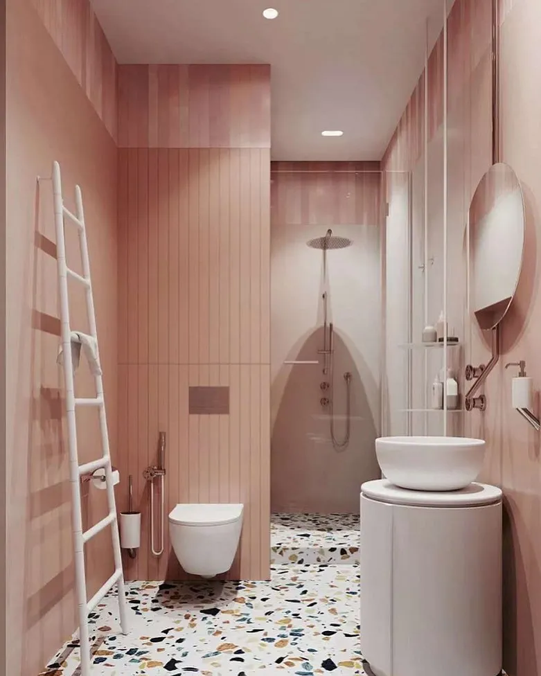 也許水磨石溫柔地傳達休閒的氣氛,我們從許多國外屋主的圖片,發現了應用在廁所與浴室的比例,也極高。