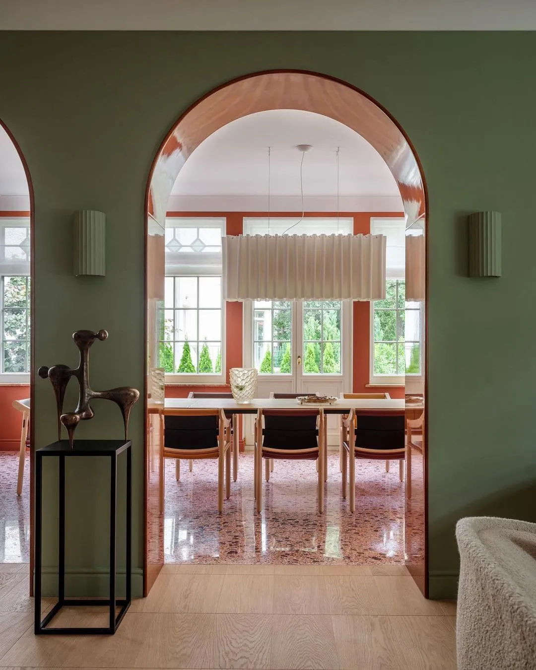 溫暖的色彩和豐富的質感,凸顯了這座房子的歷史特色,並配有著名品牌的家具和照明以及復古和定制家具,都使得這個家格外有情調。⁠