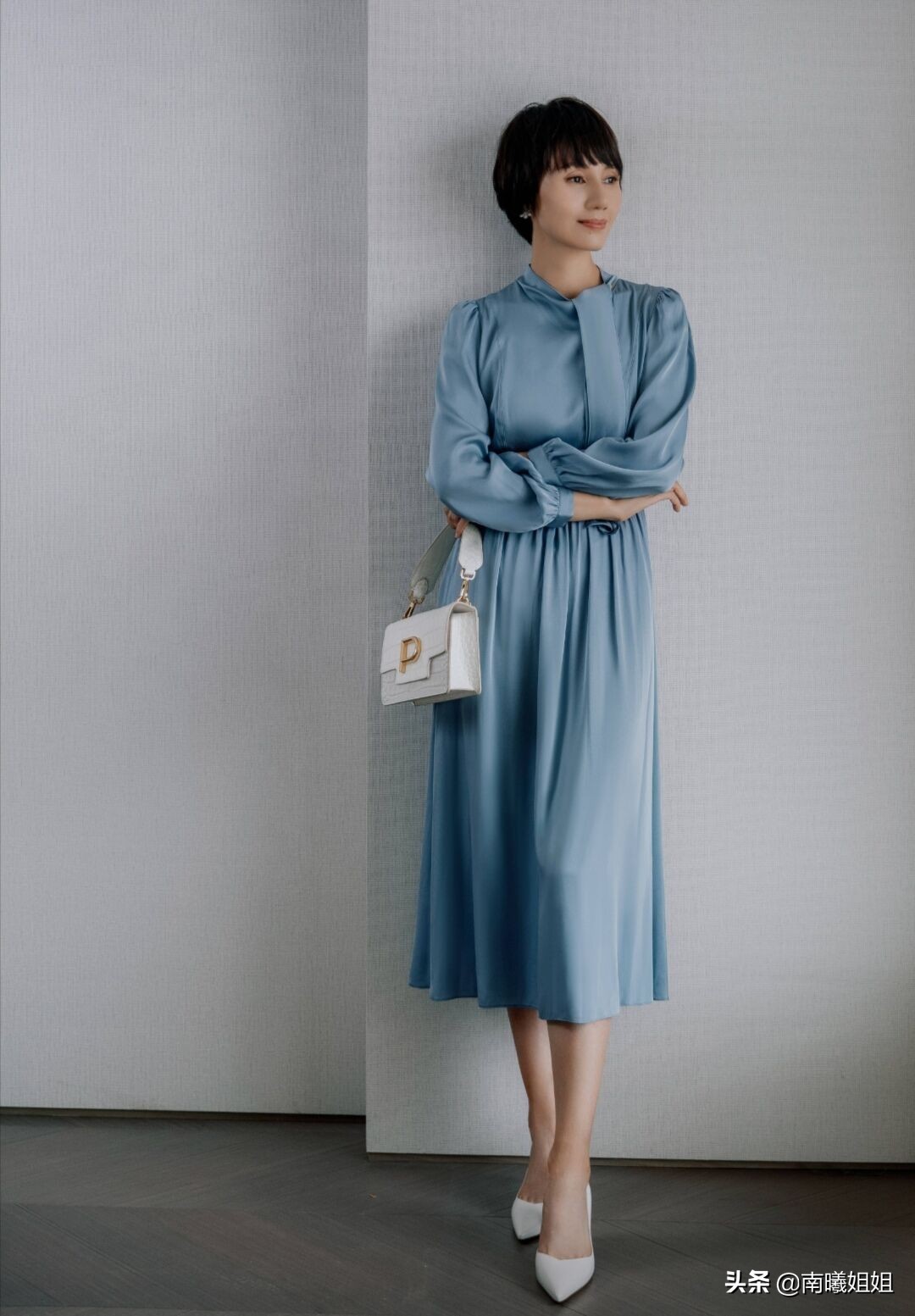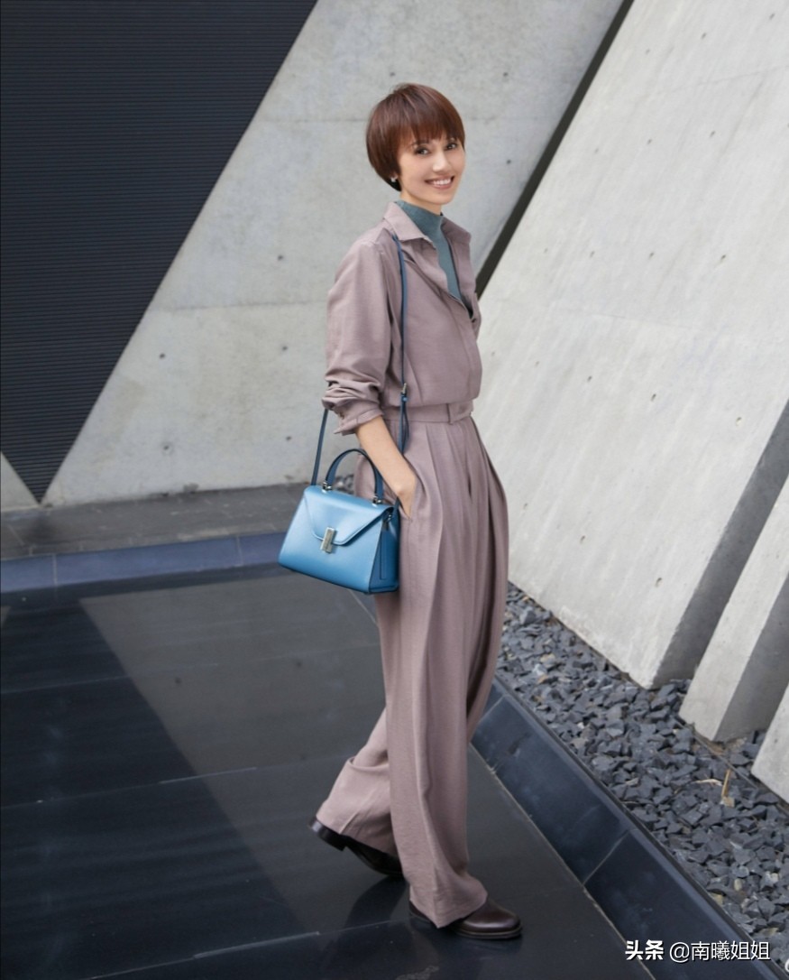 低飽和度單品的同色系穿搭,對於穿衣人的氣質襯托是非常溫柔和視覺舒適感的,且深淺不一的同色系,還可以襯托出來一定的層次感,這也是袁泉最愛的穿搭方式之一,簡約大氣有層次。