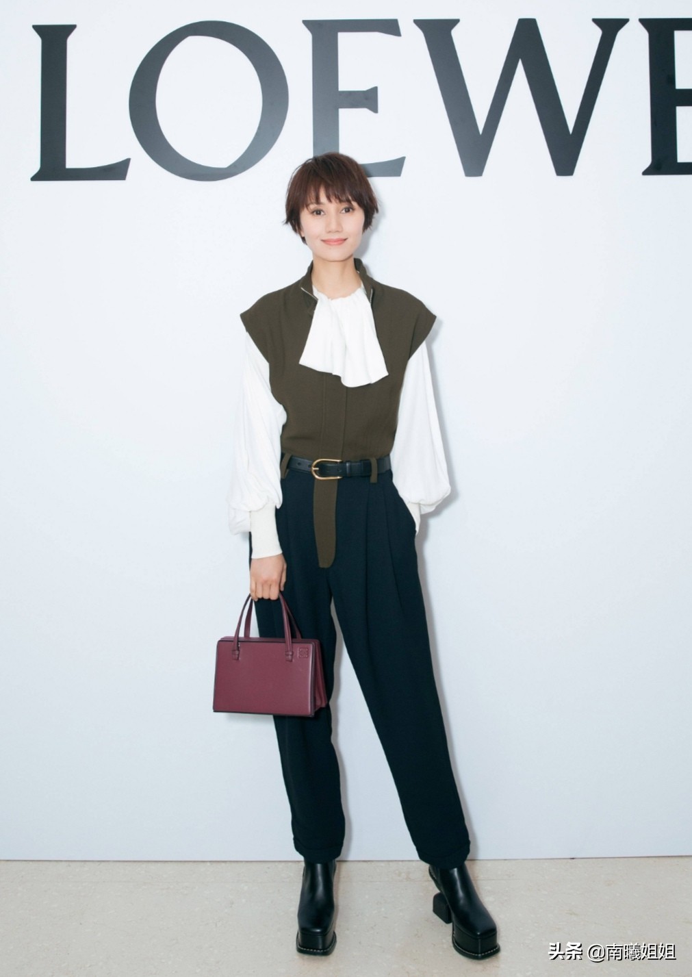 上短下長的搭配法則,幾乎是袁泉的每場出境穿搭都會遵循的方式,上身選擇短款或者是塞腰的穿搭,下身則是高腰+較長寬的設計,兩者的結合縮短上身拉長下身提現完美比例,如果是連衣裙的搭配,記得選修身+高腰。