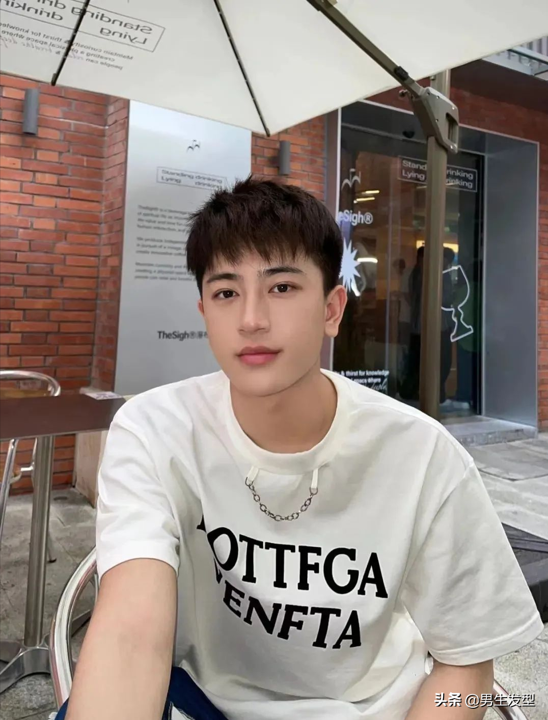 有的男孩子不喜歡把自己的額頭全露出來,那麼大家就可以試試這款碎蓋髮型。頭髮不用剪得像平頭髮型那麼短,額頭位置的頭髮可以用牙剪剪碎打薄,耳朵上面的頭髮稍微修剪一下,不蓋過耳朵就可以了。整體簡單自然,同時也沒有悶熱感,減齡又帥氣。