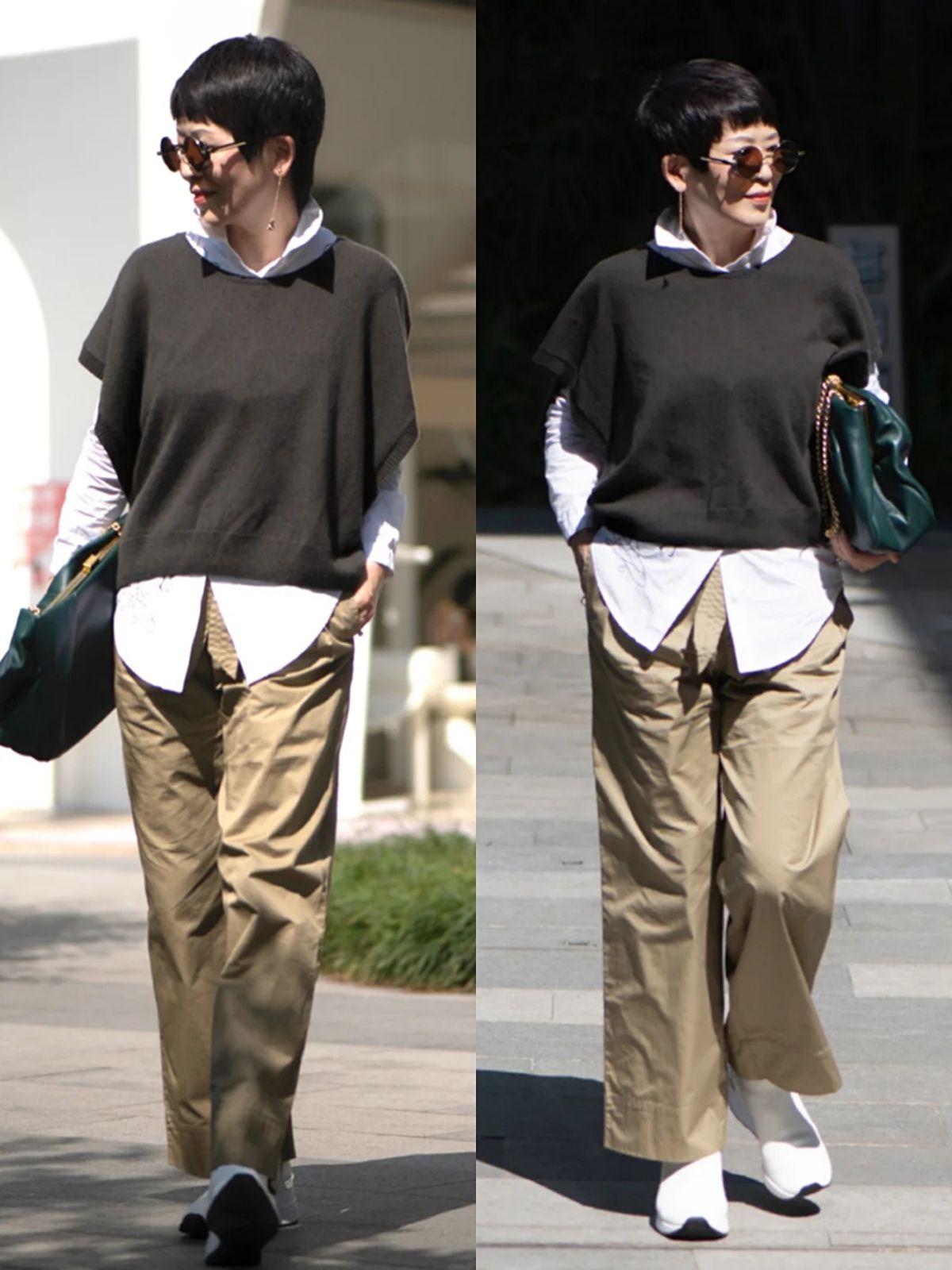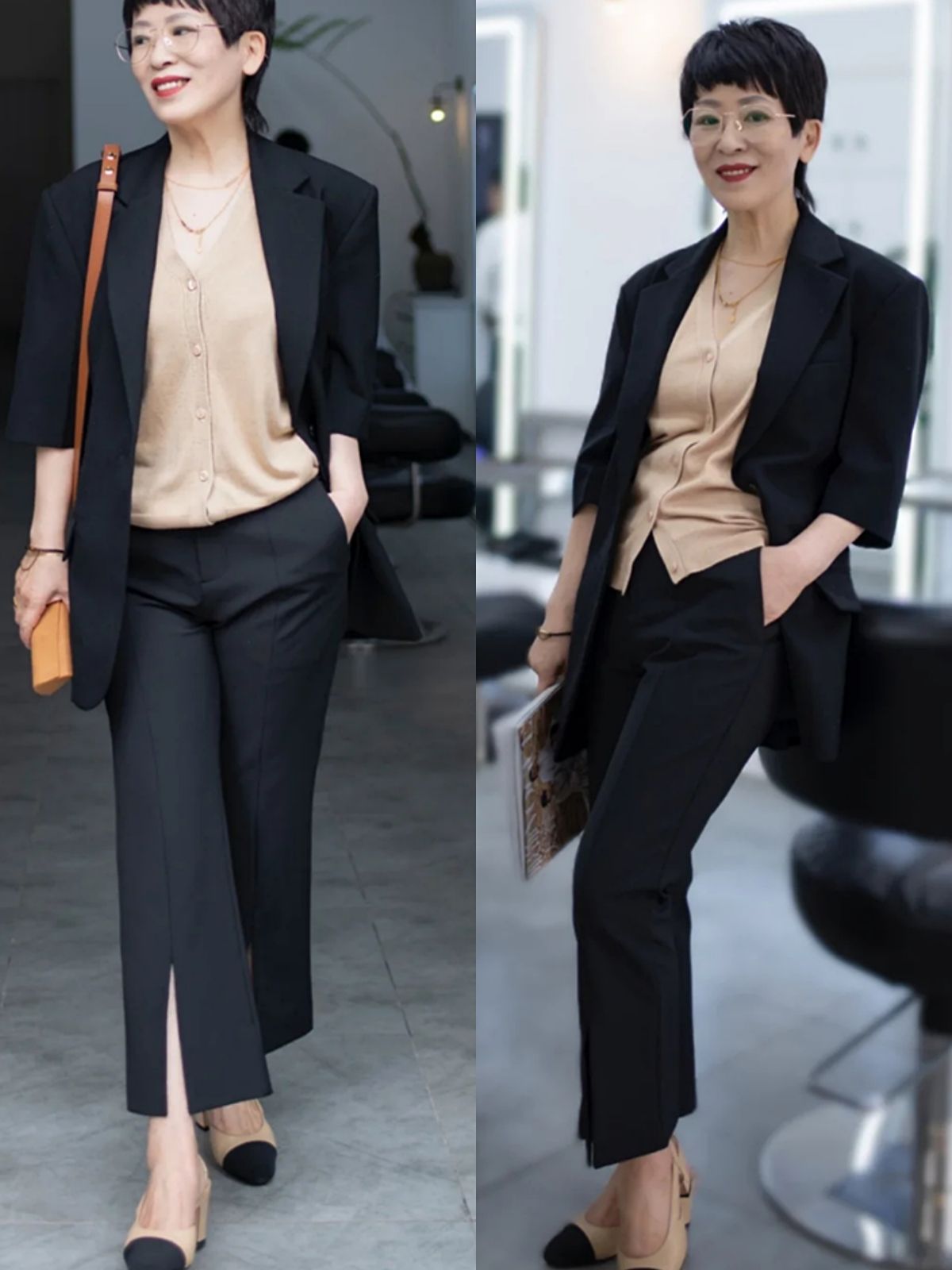 如果要想保證造型的時尚又不出錯,建議50歲的女性多穿基礎色系的服飾,例如黑色、白色、米色、卡其色等,這些更容易搭配,也能凸顯女性的魅力。