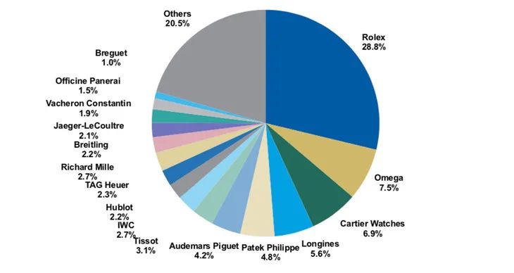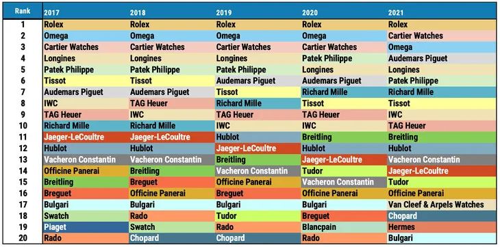 這個理論引發的購買現象在奢侈腕表領域尤為明顯,我們可以看看去年腕表銷量排行榜。勞力士、愛彼、百達翡麗和理查德米勒保持強勁銷售增長,愛彼更是靠單價制霸排名。