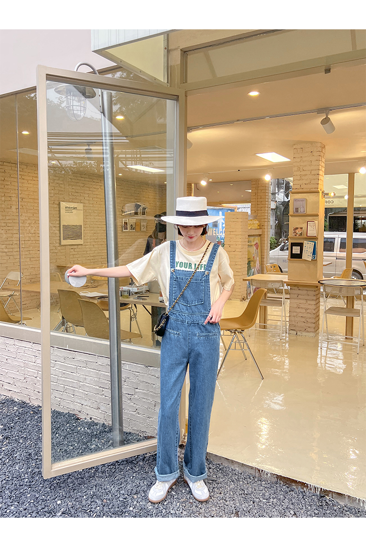 想要做回妙齡少女,又想穿得簡約隨性一些,建議大家可以先從簡約休閒風的搭配入手,這種搭配門檻不高,而且還借鏡起來也比較容易,像這身牛仔背帶褲配上淺黃色印花字母T恤的造型,很好地將休閒與個性相結合,配上斜挎包以及白色禮帽,精緻又帥氣。