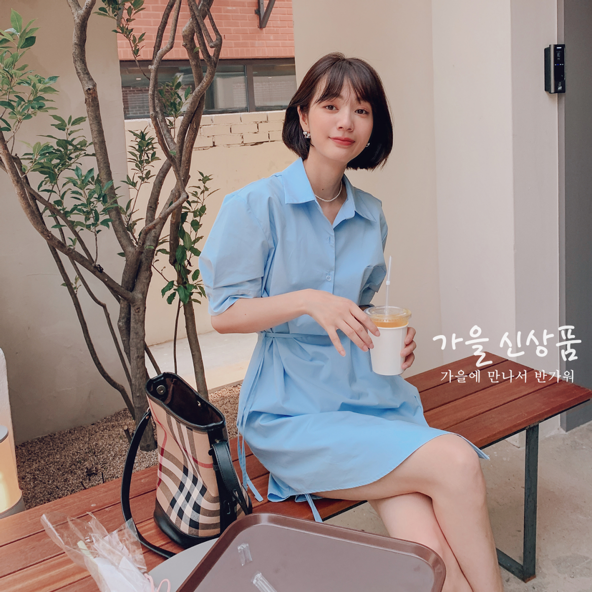 天藍色的搭配也是夏季搭配較好的選擇之一,其對於三四十歲女性來說,穿上這身簡約又有設計感的襯衫連衣裙,既能凸顯出清爽味道,又顯得優雅又正式。