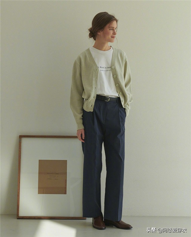 對於很多女性來說,這樣的搭配成熟不輕浮,尤其對長相也是偏溫柔的類型,這樣的針織衫+棉褲的搭配非常適合你。