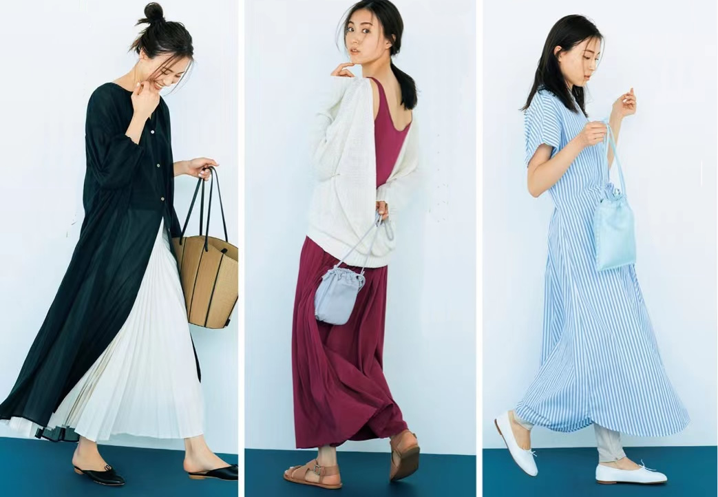 同是連衣裙,小白鞋的休閒、尖頭鞋的精緻、涼鞋的隨意,對比明顯,一眼可辨。