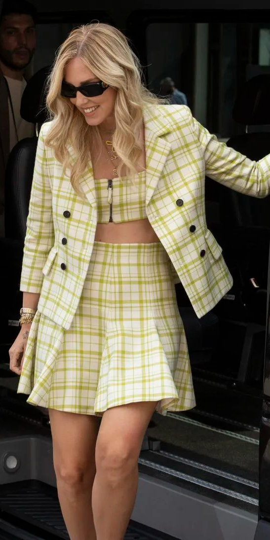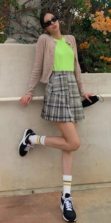 還有繞不過的格紋款。襯衫配格紋、同色系套裝、小開衫,乖女孩既視感撲面而來,誰還不是初戀女神呢!