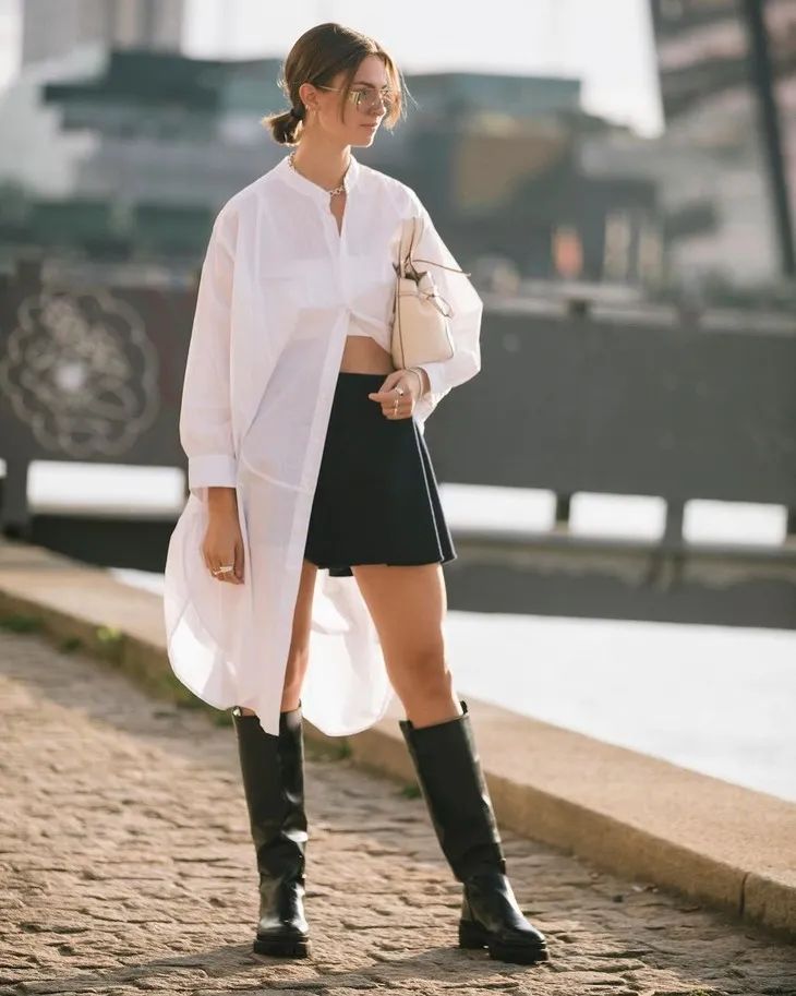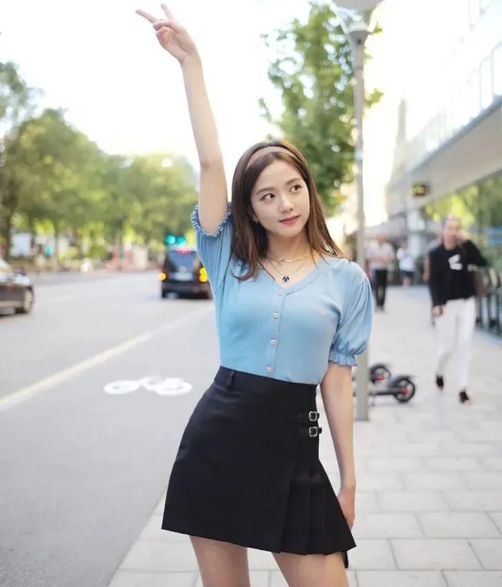 上衣搭配貼身的T恤,利落更顯腰部纖細,搭配襯衣則是通勤少女的最佳打開方式!