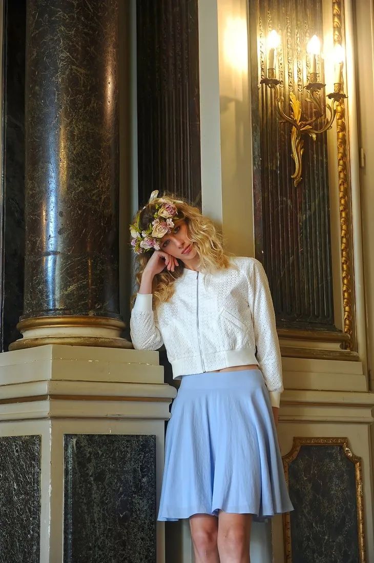 上搭薄針織的方法同樣百穿不膩,馬卡龍色甜美無敵,飽和度比較高的顏色青春靚麗。