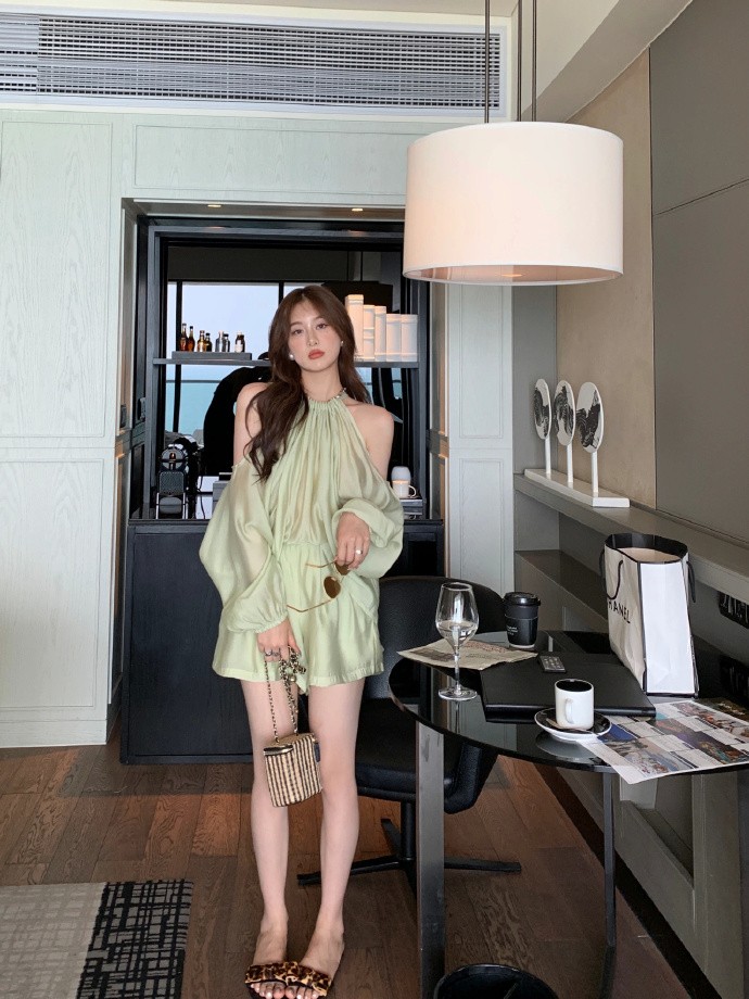在夏天穿衣服的時候,也可以嘗試用一些不規則的剪裁,別總是穿得那麼單調,例如這些潮人通過這種露肩的方式打造出了時尚感,也能貴著演繹出她們自身的身材優勢。這一條連衣裙風格溫柔又嫵媚,薄紗的材質非常透氣,在夏天穿剛剛好,短裙的搭配也比較清爽,秀出了大長腿,身材好的美眉別錯過。