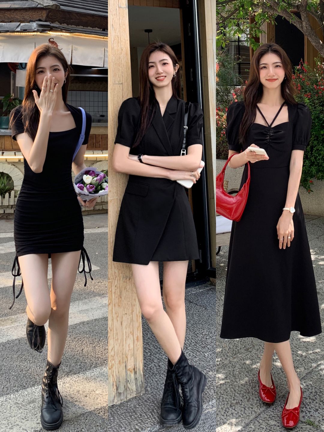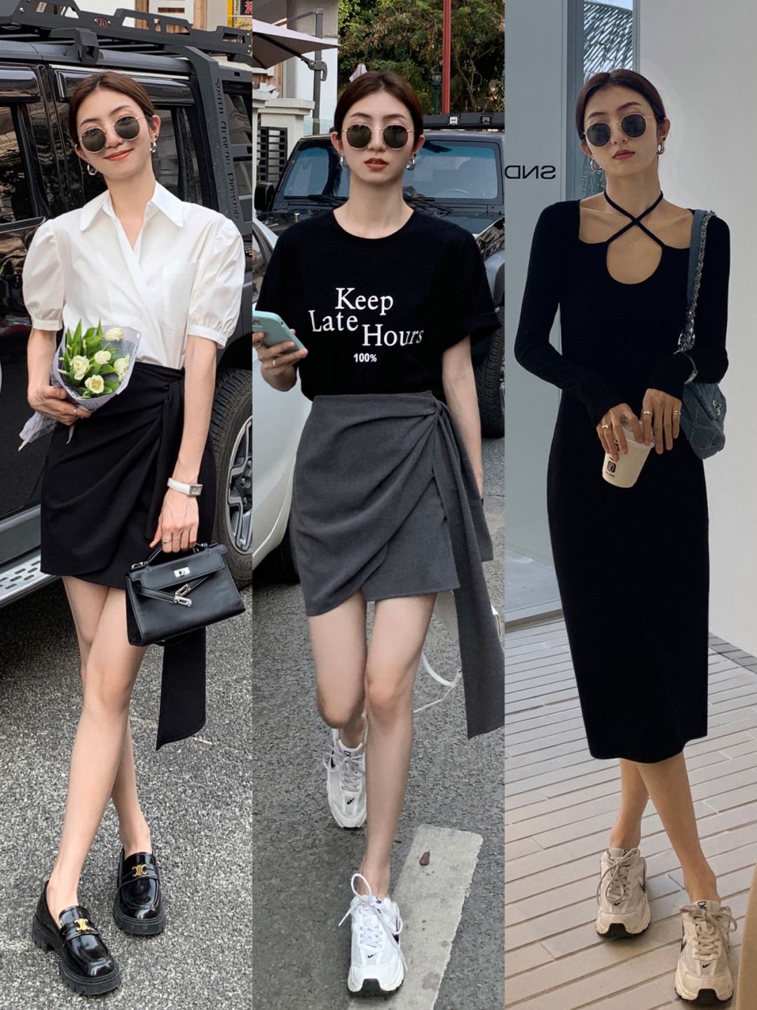在夏天雖然有很多潮人比較喜歡穿碎花裙,但這些裙裝搭配確實有些爛大街了,真正有品味的女生更青睞於純色裙裝,尤其是小黑裙的搭配,在她們的日常生活中占據了很高的地位。小黑裙非常經典,這種服飾已經流行了幾百年,而夏季穿小黑裙也要注意長度不能太長,拖地的長度肯定是要pass掉的,否則就會顯得有些厚重,可以用這種露腿穿搭來提升你的時尚感,幫助你修飾雙腿。