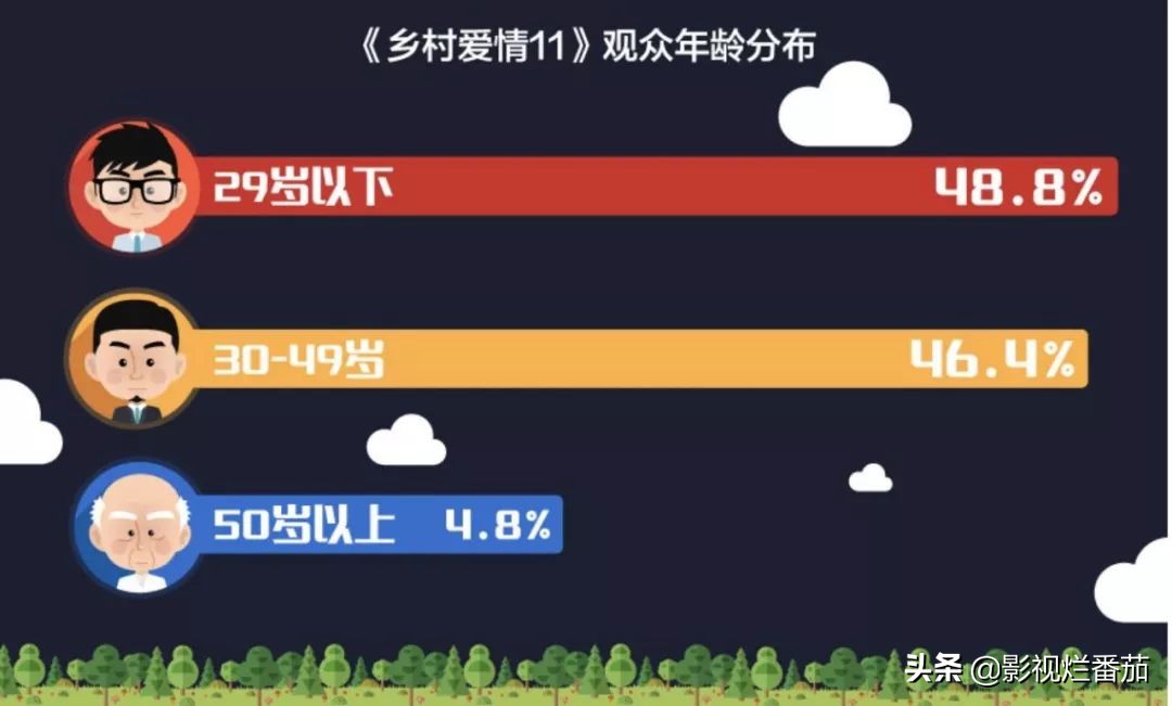 你還別說,就目前優酷給出的數據顯示,《鄉村愛情11》的主要觀眾群體已經轉移到了以29歲以下的青年為主。