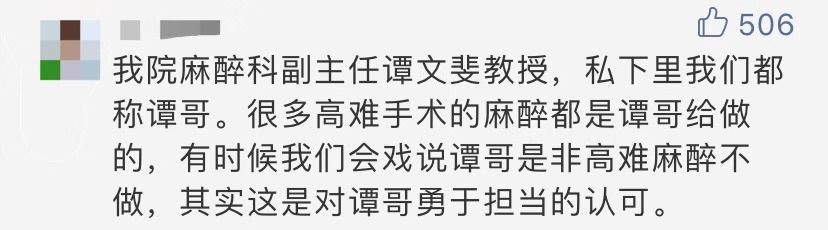 據南方都市報報導,譚文斐還說:「只是我15歲的兒子知道這件事情後非常高興,今天告訴我,他也想當醫生,給我嚇到了。其實我不希望他當醫生的,太辛苦了,但他現在對醫生這個職業很感興趣。」