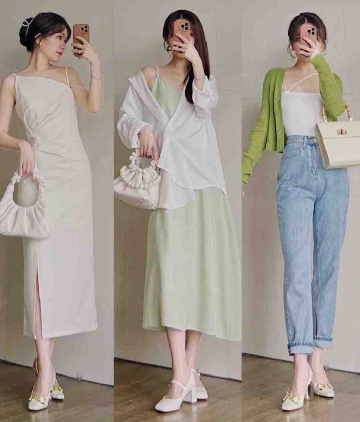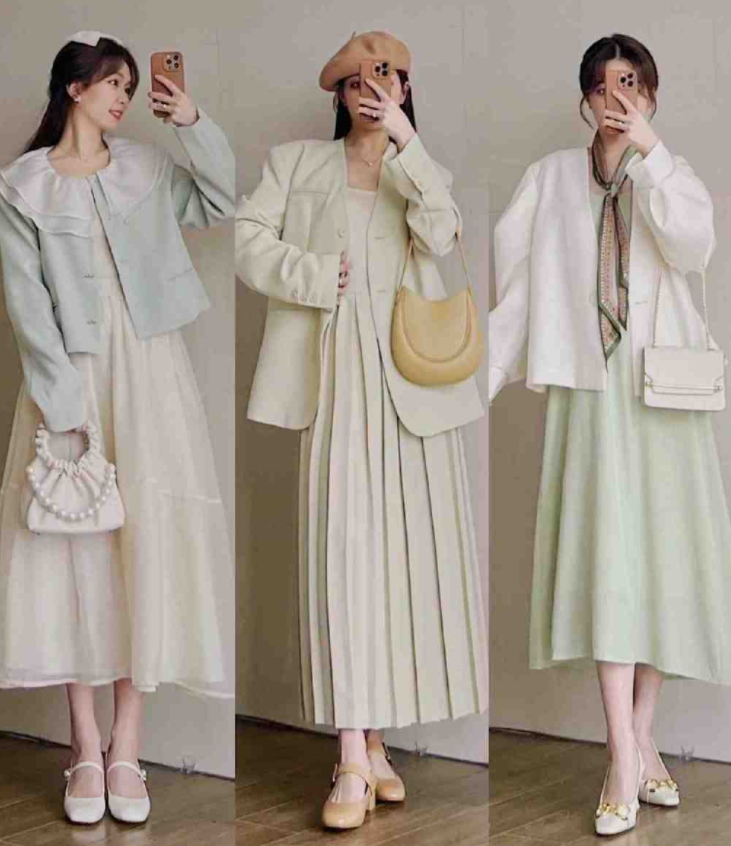 若是覺得單一的同色穿搭過於乏味,可以在搭配的時候加入一些個性化的配飾去修飾,例如我們在穿這種純色裙裝時,也可以去加入各種精緻的包包,腰帶,耳飾,項鏈,用飾品來修飾,會讓造型變得更有亮點,也可以在裙子的設計上面融入一些小碎花。