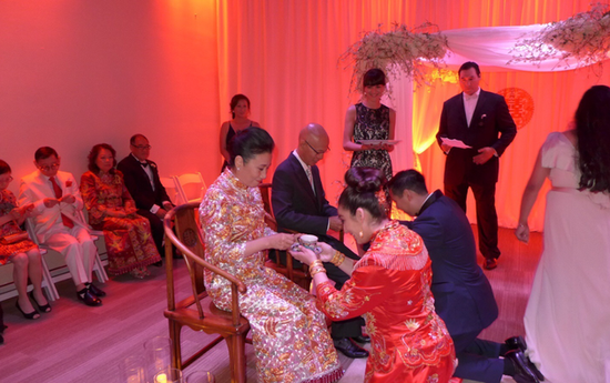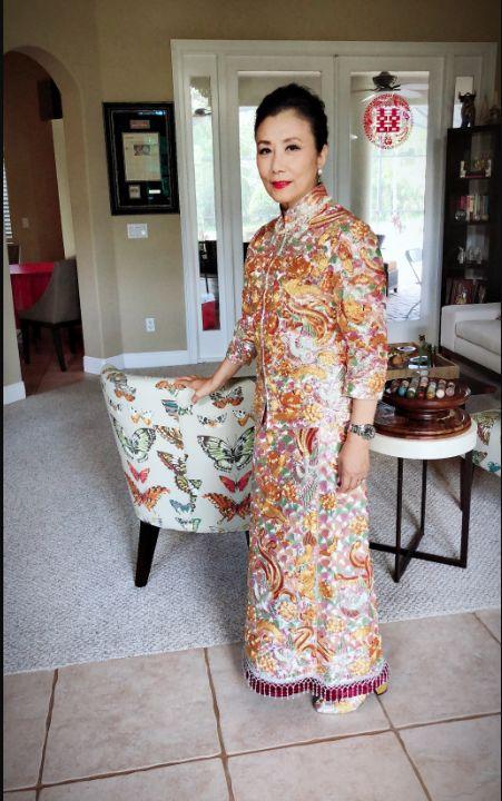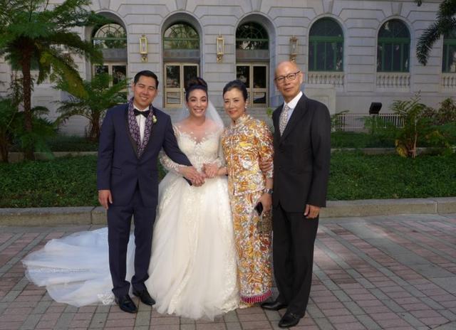 汪明荃在老公羅家英的陪同之下,出席了侄子的婚禮。汪明荃穿著一身由金銀線織成的中式裙褂,顯得她神采奕奕,站在外籍新娘子身旁也毫不遜色,猶有年輕風采,可以說是搶盡新娘子的風頭了。據悉,汪明荃的這身裙褂是最高級別的幻彩褂皇,金銀線密度十分高,裁縫花了十個月的時間才完成的,價格保守估計有5萬到6萬左右。