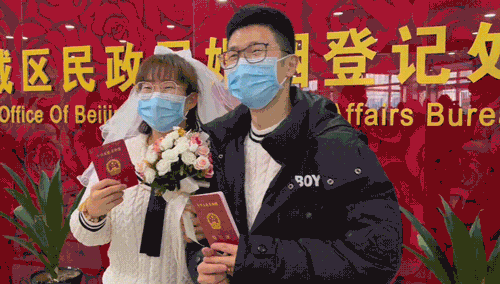 早7點50分,東城區民政局婚姻登記處門口,預約領證新人掃描「健康碼」「行程碼」後排號等待入場