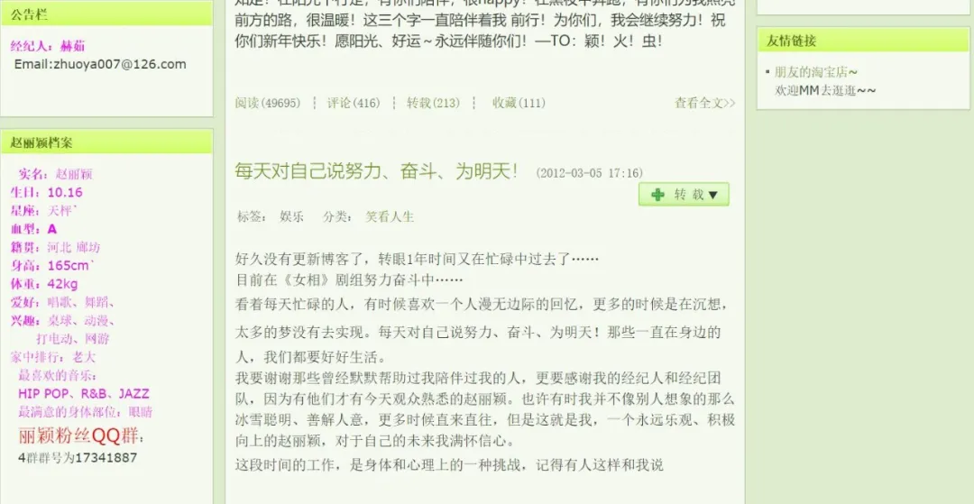 但是翻看她曾經的部落格,你會發現,關於自己的7年配角生涯,她字裡行間沒有任何抱怨。