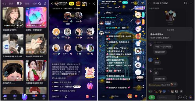除遊戲外,音樂類玩法也是每款產品不可少的,如音樂會、歡樂KTV、語聊聽歌、音樂打榜、直播等等,對於社交產品來說,音樂元素的加持不僅可豐富玩法,而且各場景下合適的音樂和音效恰如其分地出現能渲染氣氛,給予用戶更輕鬆的交友體驗。