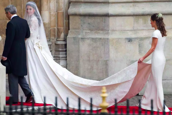 圖:英國名媛Pippa Middleton當伴娘的時候,也穿了一身白色禮服,還引發了熱議