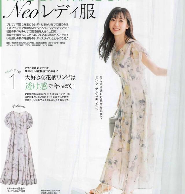 像這條連衣裙,它給人最大的感受就是看起來清爽乾淨,雪紡的材質,可以打造出若隱若現的效果,有了不混亂的元素的修飾,服裝的整個表面不會無趣。
