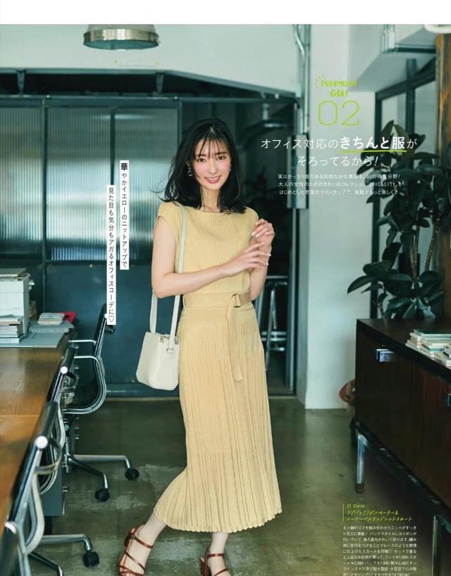 好比這條黃色的連衣裙,這裡不談顏色,光說它的整體設計,裙子的長度可以讓那些腿部線條不夠骨感的女性遮掩雙腿,垂墜感良好的裙擺一看就很柔軟。腰部的腰帶保持同色,可以讓不同身材的女性構造出不一致的腰部輪廓,在穿衣方面擁有極為寬廣的彈性空間。
