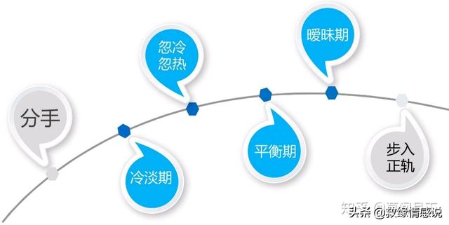 普遍人群在接收到對方可能「狀態不錯」的信號之後,就想要趕快表達和好的意願,但是卻沒有掌握好一個正確的時機。通常來說我們和前任之間的相處狀態都會向如下圖中所示: